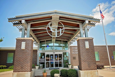 Outside shot of the main entrance to Concho County Hospital.